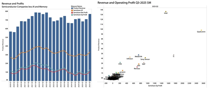 En dehors des acteurs de l’IA et de la mémoire, les 90 % d’entreprises constituant le cœur du marché des semi-conducteurs s’interrogent sur la situation. Après une reprise retardée, ces entreprises ont connu quelques trimestres encourageants, mais les tensions sur l’approvisionnement en mémoire commencent déjà à peser sur la demande.